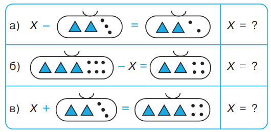 5 - х = 1 2 + х = 9 х - 2 = 2