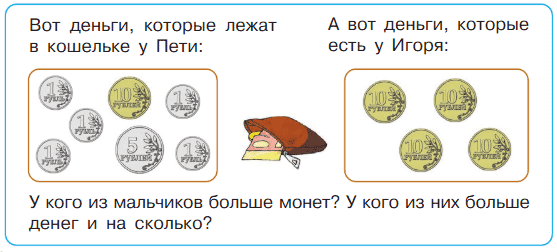 У Пети больше монет. У Игоря на 20 к. больше, чем у Пети.