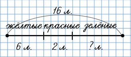 Из них на ветке клёна было 16 листьев. 8 зелёных, 2 красных, остальные жёлтые. Сколько жёлтых листьев было?