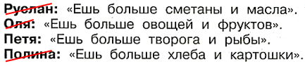 6. Во время школьного медицинского осмотра врач рекомендовал Диме есть больше продуктов, богатых белками. Ребята стали давать другу советы. Вот что они предложили: