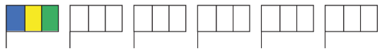 2. Нарисуй в тетради 6 флажков. Раскрась по-разному каждый из флажков тремя цветами - синим, жёлтым и зелёным.