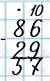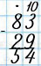 Пишу: 83 - 29. В уменьшаемом не хватает единиц, поэтому занимаю 1 десяток и ставлю точку.