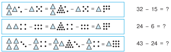 Если при вычитании единиц не хватает единиц для вычитания, занимаем десяток. Результат вычитания записываем под единицами. После уменьшаем количество десятков на 1 (так как занимали 1 десяток при вычитании единиц) и выполняем вычитание. Результат записываем под десятками. Читаем ответ.