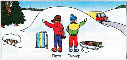Мы видим, что со стороны пологого склона находится дорога с движущимися автомобилями. С этой стороны кататься нельзя! Это очень опасно, потому что можно скатиться на дорогу, попасть под автомобиль. Кататься безопаснее там, где предложил Петя.