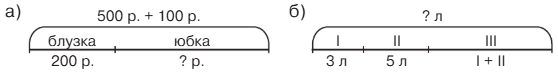 а) У Маши было 500 р., ещё 100 р. ей дала мама. На все деньги она купила блузку и юбку. Блузка стоила 200 руб. Сколько стоила юбка?