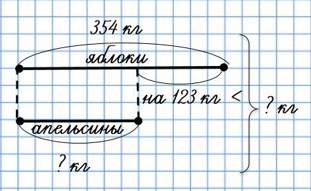 В палатку привезли 354 кг яблок, а апельсинов - на 123 кг меньше. Вычислим, сколько апельсинов привезли в палатку: