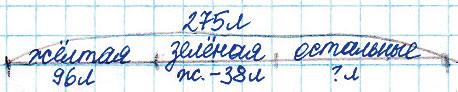 б) Крокодил Гена привёз на строительство 275 л краски. Жёлтой краски было 96 л, а зелёной - на 38 л меньше, чем жёлтой. Сколько было литров краски других цветов?
