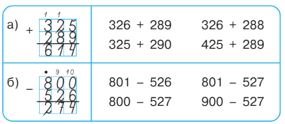 Повтори алгоритм письменного сложения и вычитания трёхзначных чисел.