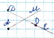 7. Построй два пересекающихся луча DE и АМ. Построй ОЕ, который пересекает луч DE и не пересекает луч АМ.