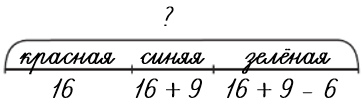 б) 1) 16 + 9 = 25 (л.) - синей.
