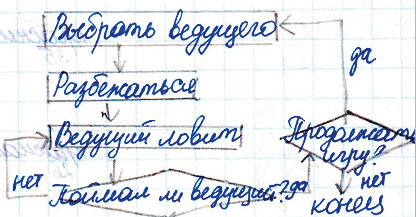 12. Андрей записал алгоритм игры в прятки. Верно ли он определил последовательность действий игроков в этой игре?