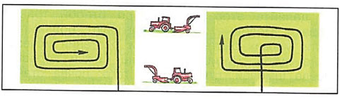 3. Сравните схемы. Как должна двигаться косилка при скашивании трав: от краёв луга к центру или от центра к краям. Объясните причину.