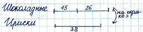 4. В одном пакете 15 шоколадных конфет и 38 ирисок, а в другом - 26 шоколадных конфет. Каких конфет больше в этих двух пакетах: шоколадных или ирисок? На сколько больше?