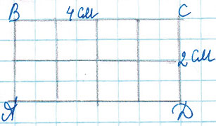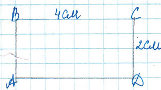 1) Начерти прямоугольник со сторонами 4 см и 2 см и обозначь буквами его вершины. Назови параллельные и перпендикулярные отрезки. Чему равен периметр этого прямоугольника?