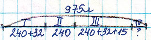 9. В четырёх бочках 975 л кваса. В первой бочке на 32 л больше, чем во второй, и на 15 л меньше, чем в третьей. Сколько литров кваса в четвёртой бочке, если во второй - 240 л?