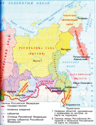 Рассматриваем карту на с. 154 – 155. С её помощью приводим примеры республик, областей, краёв, автономных округов. Называем города федерального значения.