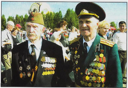 На груди ветеранов поблёскивают их многочисленные награды, говорящие об отваге и мужестве их обладателей. Не блестят только глаза самих ветеранов. Они грустят о погибших товарищах, не доживших до Дня Победы.