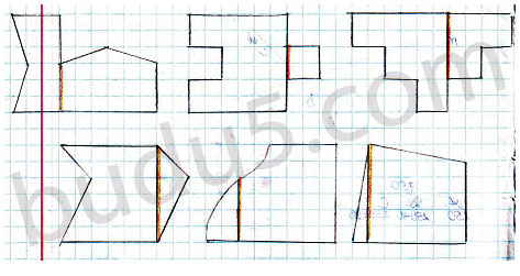 Задание № 16. Каждую из изображённых на рисунке фигур можно превратить в квадрат, сделав только один разрез ножницами. Как это сделать? Проверь с помощью кальки.