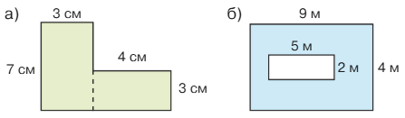 а) 1) 3 • 7 = 21 (см2) - площадь левой фигуры.