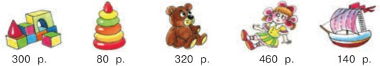 б) У Иры 400 р. Какие игрушки они может купить, если захочет купить одну игрушку; две игрушки; три игрушки?