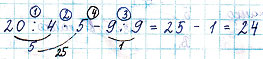 | 20 : 4 • 5 - 9 : 9 | 7 • 3 + 27 : 9 • 4 - 32 : 4 |