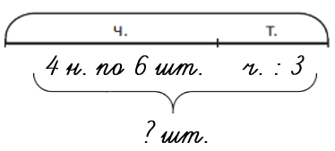 а) Купили 4 набора чашек по 6 в каждом наборе, а тарелок - в 3 раза меньше. Сколько тарелок купили?