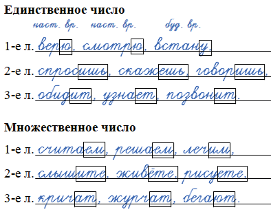 Верю, обидит, спросишь, слышите, кричат, считаем, смотрю, живёте, встану, решаем, журчат, скажешь, узнает, бегают, позвонит, говоришь, лечим, рисуете.