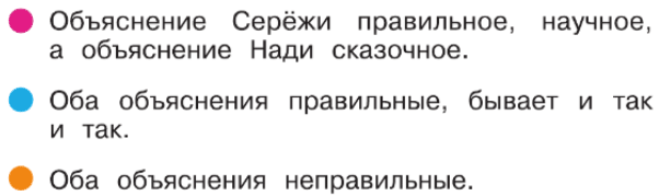 2. Серёжа так объяснил причину возникновения дождя: "Капельки воды, из которых состоят тучи, тяжёлые. Они не могут долго держаться в небе и падают на землю".