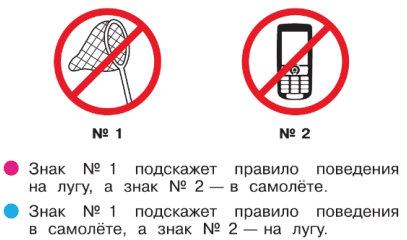 10. Называем, какой из этих знаков подскажет правило поведения на лугу, а какой – в самолёте.