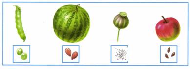 3. Изучите, какие семена в этих плодах. Наклейте к каждому плоду рисунок с его семенами (из Приложения).