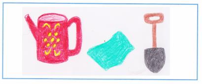 2) Нарисуйте предметы, которые вы использовали для ухода за комнатными растениями.
