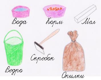 2) Нарисуйте предметы, которые вы использовали для ухода за животными живого уголка.