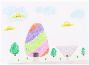 Мне хочется, чтобы в будущем строили необычные цветные здания и на улицах не было автомобилей. Все машины будут летающие, а город – яркий  и безопасный.
