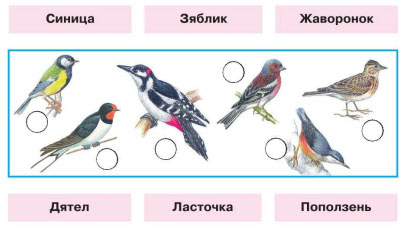 1. Знаете ли вы этих птиц? Соедините линиями рисунки и названия. Проверьте себя по учебнику или атласу - определителю.