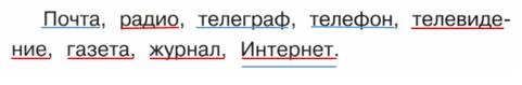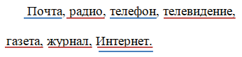 Названия средств связи подчеркнём синим карандашом, а названия средств массовой информации – красным.