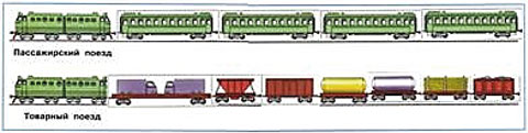 1. На станции перепутались части поездов – пассажирского и товарного. Вырежи картинки из Приложения и собери поезда. Попроси соседа по парте проверить тебя. После проверки наклей детали. Расскажи, какие грузы везёт товарный поезд.