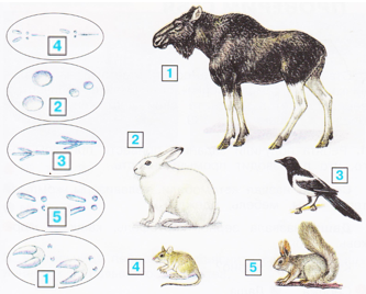 3. Накрываем фишками следы с номерами тех животных, которые изображены справа.