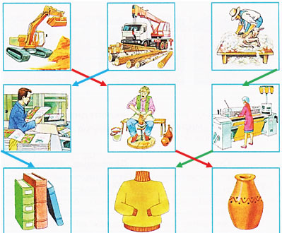 1. Покажи стрелками разного цвета разные производственные цепочки.