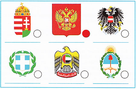 2. Найди на рисунке и отметь (закрась кружок) герб Российской Федерации.