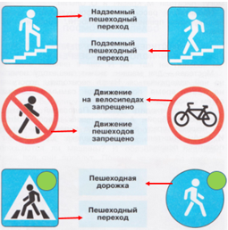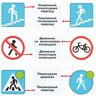 По дороге в школу мне встречаются знаки: "Пешеходный переход", "Пешеходная дорожка".