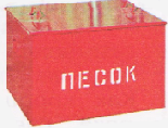 Разгорающийся пожар можно потушить песком. Поэтому рядом с пожарным щитом стоит ящик с песком.