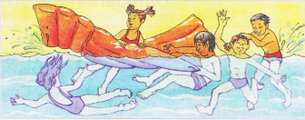 Во время купания нельзя баловаться: прыгать на других детей и удерживать их под водой; подныривать под надувной матрац, переворачивать его, когда на нём кто –то лежит; подныривать и тянуть за ноги купающихся детей.