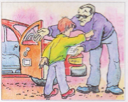 Здесь мужчина заманивает ребёнка к себе в машину. Нельзя ни к кому садиться в машину, что бы они ни говорили!