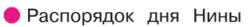 У Нины правильный распорядок дня. В нём чередуются все пункты так, как должно быть в распорядке дня ученика, чтобы всё успевать и сохранять здоровье.