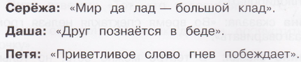 10. Учительница дала задание подобрать пословицы о согласии и взаимопомощи. Вот что предложили ребята.