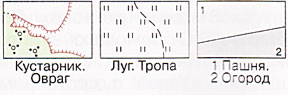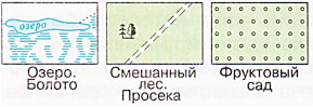 2. Изучаем условные знаки плана. С их помощью читаем план, то есть определяем, что на нём изображено.