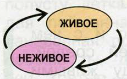 "Живое – неживое" – это обратная связь. Отжившие свою жизнь живые организмы и отмершие растения удобряют собой почву.
