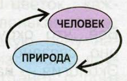 "Природа – человек". Человек полностью зависит от природы. Он получает от неё свет, тепло, воздух, воду, пищу, одежду, кров.