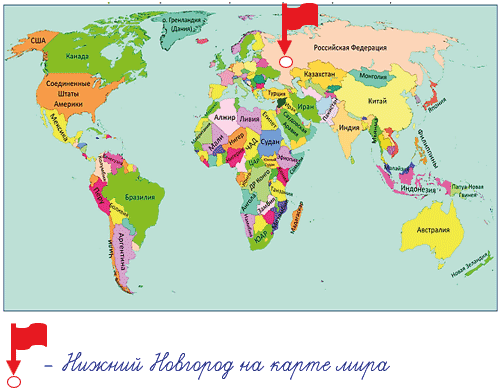 На следующей картинке я показала, где находится наш города на карте мира.