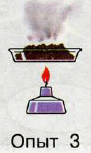 Опыт 3. Будем продолжать нагревать почву. Вскоре мы увидим дым, почувствуем неприятный запах. Это сгорает перегной почвы, который образовался из остатков растений и животных. Перегной придаёт почве тёмный цвет.